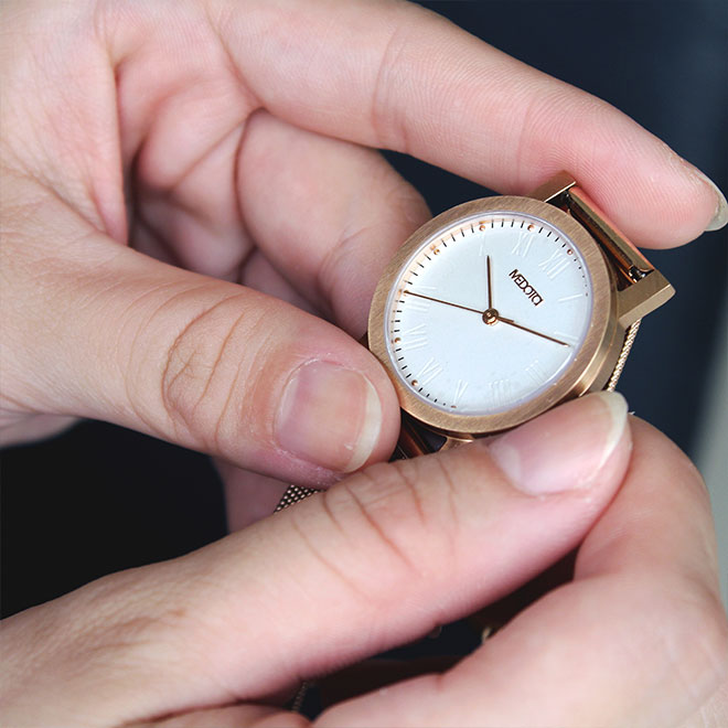 極簡輕薄系列–純粹款以極簡主義為設計主軸,潔淨優雅的錶盤及凹痕設計而成的羅馬數字與細緻工藝製作成的指針和不鏽鋼錶身搭配之下,傳達出最初與簡單的涵義,全錶款採用不銹鋼材質,並採用抗磨損藍寶石水晶玻璃及瑞士機芯。也是男女皆可配戴的情侶錶,另可搭配尼龍錶帶。