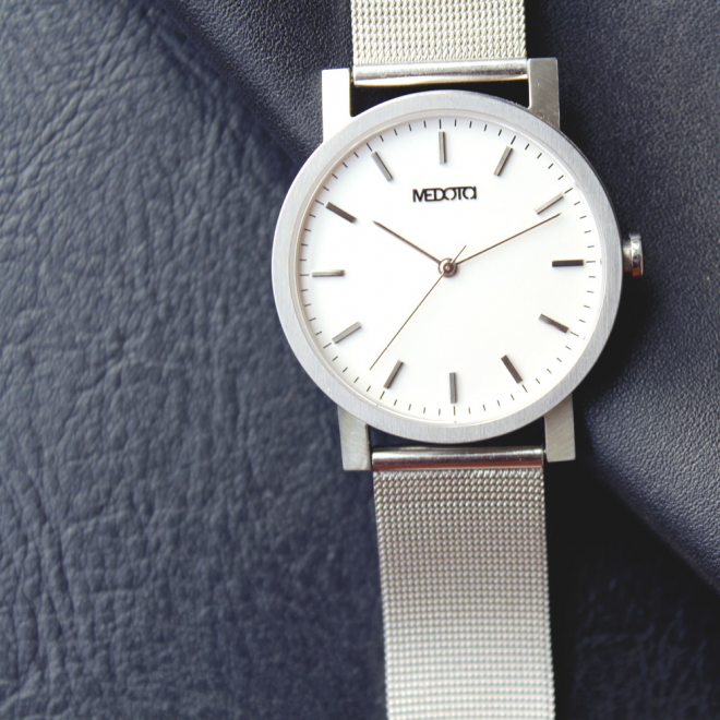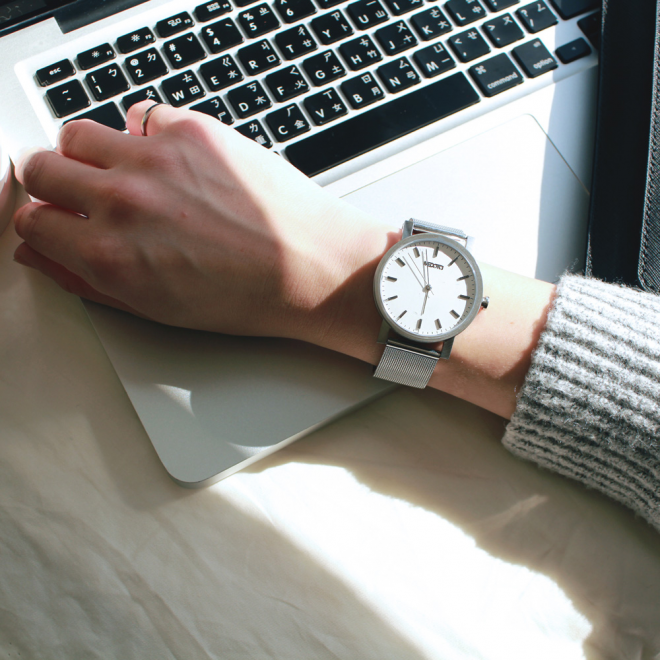 極簡輕薄系列–倒影款獨創0.8mm厚度斜面12時位設計的錶款,透過細緻工藝製作成的指針及不銹鋼錶身搭配,傳遞出濃濃復古時尚感。錶款錶面採用抗磨損藍寶石水晶玻璃而機芯則選用瑞士製,是款男女皆可配戴的情侶錶,另可搭配尼龍錶帶。