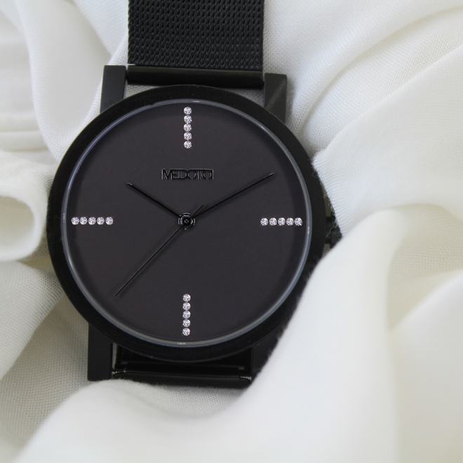 極簡輕薄系列–奢華款潔淨錶盤搭配閃爍施華洛世奇晶鑽製作的4時位設計,在任何場合都能成為焦點,展現出現代男女追求多變的有趣生活態度,是款不容錯過的亮眼錶款,全錶款採用霧面絲紋不銹鋼材質,並採用抗磨損藍寶石水晶玻璃及瑞士機芯。無論是情侶或是閨蜜都適合的對表,另可搭配尼龍錶帶。