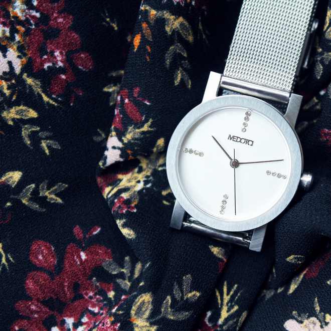 極簡輕薄系列–奢華款潔淨錶盤搭配閃爍施華洛世奇晶鑽製作的4時位設計,在任何場合都能成為焦點,展現出現代男女追求多變的有趣生活態度,是款不容錯過的亮眼錶款,全錶款採用霧面絲紋不銹鋼材質,並採用抗磨損藍寶石水晶玻璃及瑞士機芯。無論是情侶或是閨蜜都適合的對表,另可搭配尼龍錶帶。