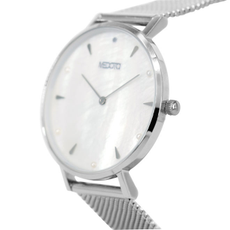 以希臘神話海洋女神名字命名的Thetis,靈感來自於浪漫的大海,將海洋中珍貴的貝殼作為錶款的主要基底,再運用美麗的珍珠點綴手錶的精緻感,錶殼與錶帶的部分則是以不鏽鋼為主。
