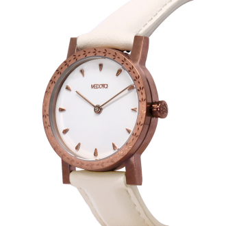 典雅的Autm系列是MEDOTA 2019第一個作品,將復古的錶殼刻上細緻的花圈,再添上咖啡金色做為主要色系,並與百搭的米白色錶帶結合,傳遞出這個季節裡浪漫的獨特柔美感,並也展現出女孩們漂亮外表內的細膩心思