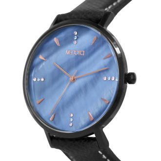 將柔和的貝殼錶面搭配上耀眼動人的鑽石,在與法國進口真皮錶帶做結合,使整體錶款增添幾分個性感詮釋出一位耀眼動人女性擁有勇敢外表和溫柔的內心的特質